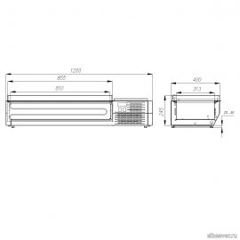 Температурный режим, *С: +2...+10; гастроемкости GN 1/3; размер: 1200х400х420