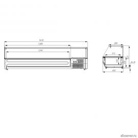 Температурный режим, *С: +2...+10; гастроемкости GN 1/3; размер: 1630х400х420