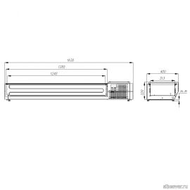 Температурный режим, *С: +2...+10; гастроемкости GN 1/3; размер: 1630х400х220